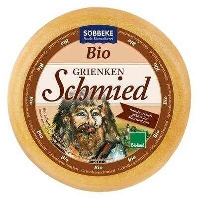 Bioland Schnittkäse 50% Fett i. Tr. rotgeschmiert, affiniert mit Rotkulur und einer Bio Kräutermischung (Schabziger Klee, Brennessel und Petersilie)